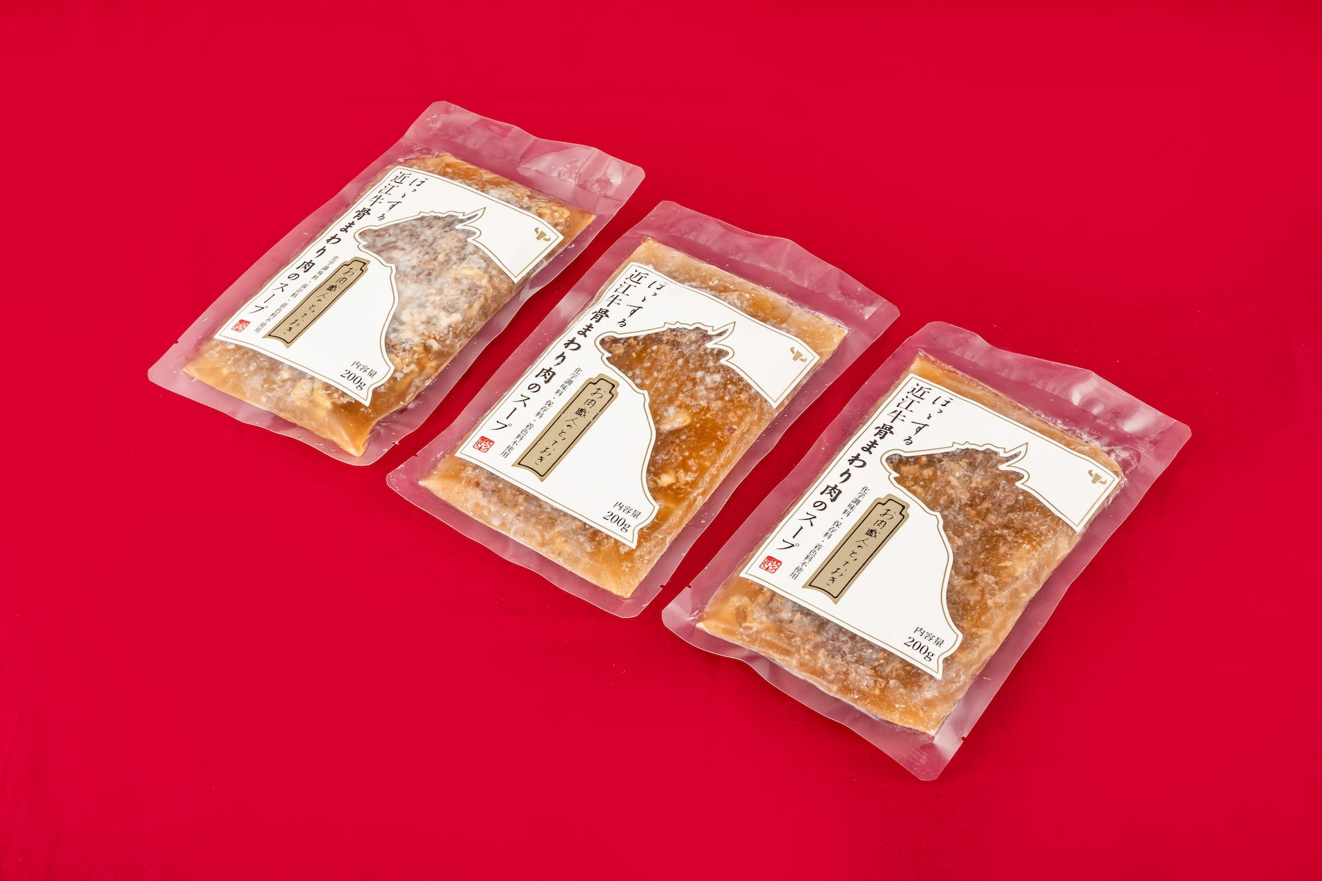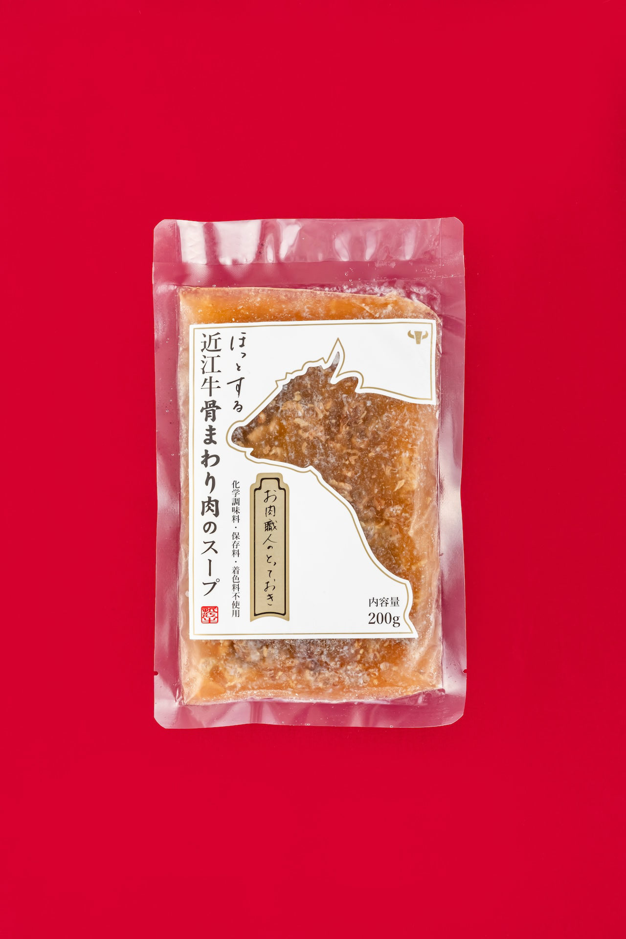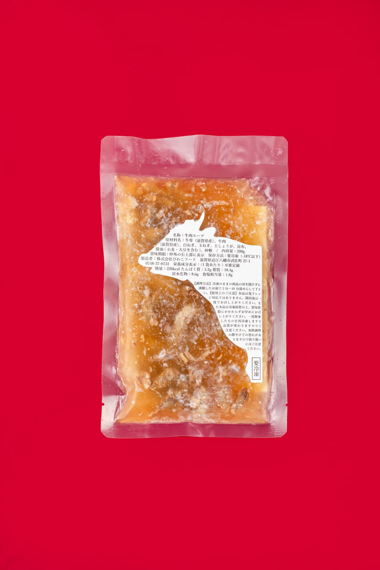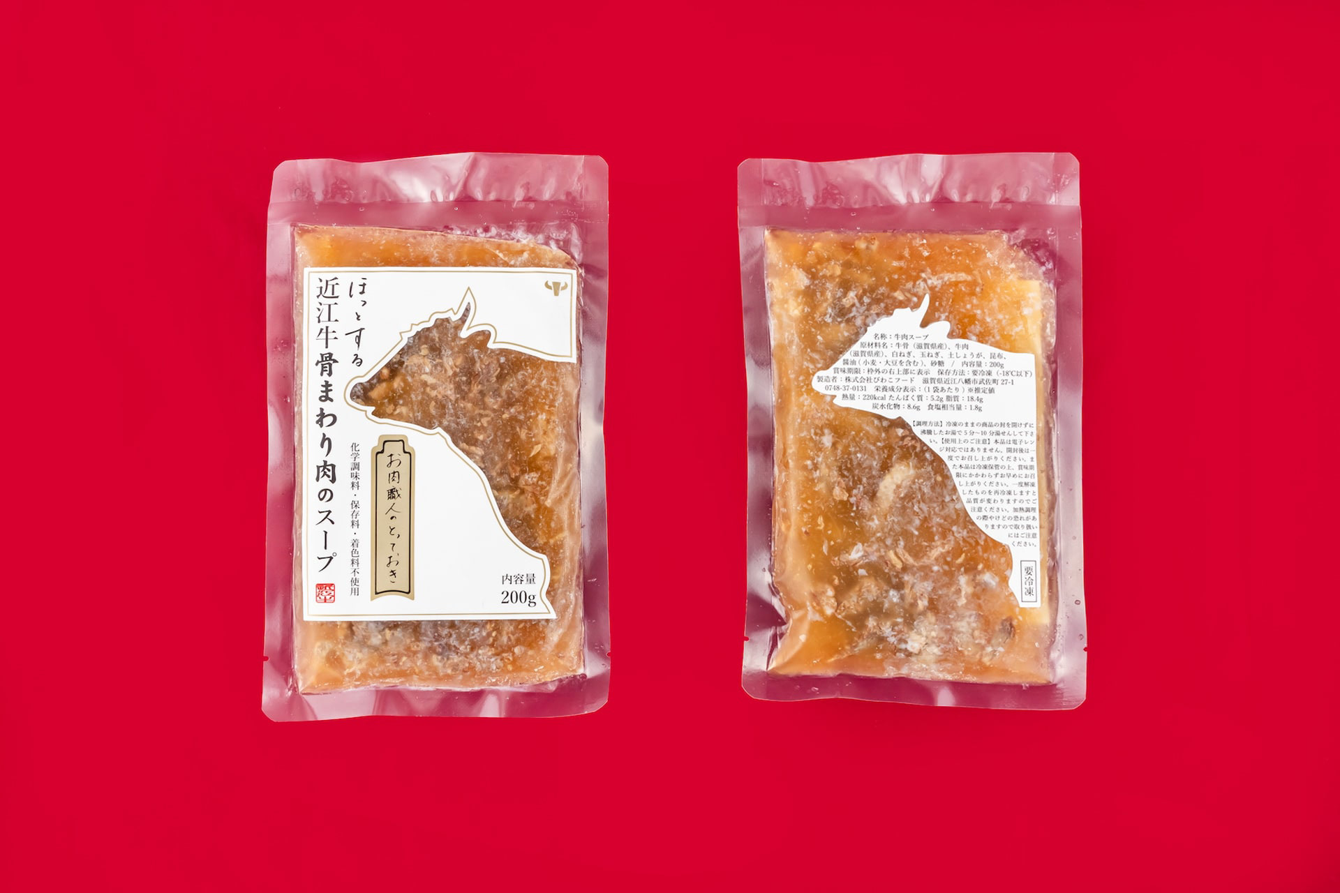 選りすぐりの近江牛の精肉加工時に骨を外す工程があります。 丁寧な職人の技術で骨に残るうまみの十分なお肉をせせり取り、牛骨とともに地元産の野菜、厳選した昆布で煮出したスープです。 この商品は、冷凍スープということでデザインできる幅が狭かったのですが、 「骨まわり肉を無駄にしない」ということを 「シールラベルを無駄にしない」へ置き換えて、 牛のシルエットは背面では成分表示ラベルに活用しました。 ラベルは縦横の面積で価格が決まってしまいます。 一枚のラベルを両面に使い、コストも抑えることにも繋がりました。 近江八幡市のふるさと納税でも、注文が増えていおり「パッケージが明快でかわいらしく商品内容を反映させている」というお声をいただいたりと非常に好評だそうです。 During the butchering process of selected Omi beef, there is a process of removing the bones. With careful craftsmanship, the meat with ample umami remaining on the bones is sesseeded, and the soup is simmered with local vegetables and carefully selected kelp along with the beef bones. This product was a frozen soup, which narrowed the scope of what we could design, We were able to design a product that would not waste the meat around the bones. The silhouette of the beef on the back of the label is a symbol of the beef's health, The silhouette of a cow was used for the ingredient label on the back. The price of a label is determined by its vertical and horizontal area. Using a single label on both sides also helped to reduce costs. Orders from Omi Hachiman City's hometown taxpayers have been increasing, and the product has been very well received, with comments such as, "The package is clear, cute, and reflects the product content. 这种方法被用于展示标签。 标签的价格由其垂直和水平面积决定。 双面使用一个标签也有助于降低成本。 在 Omi Hachiman City 的家乡,订单量一直在增加,产品也广受好评,客户认为包装清晰、可爱,反映了产品的内容。
