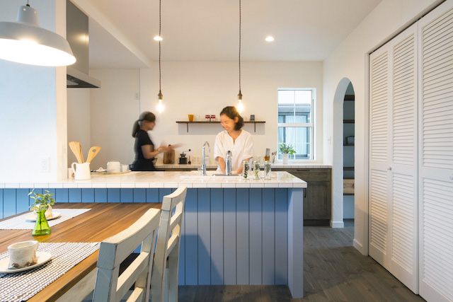ビーチのナチュラルカラーと、奥行きのある上品な色の組み合わせにより、カジュアルでありながら、