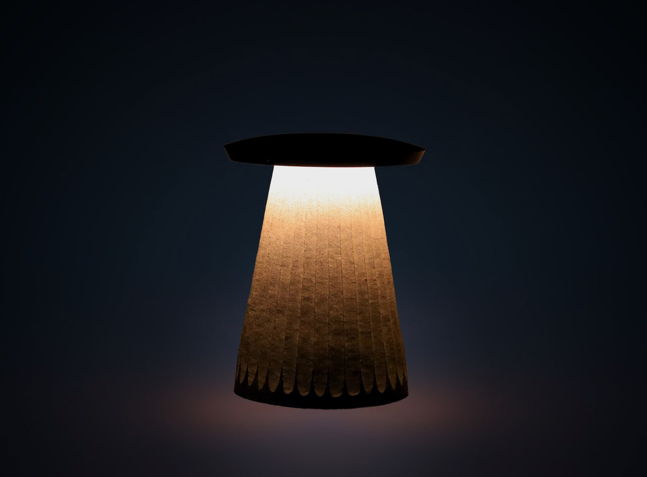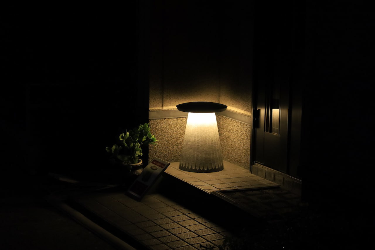 香川県の庵治石を使った屋外照明器具のデザインです。光が当たる下の部分は荒い仕上げにしています。天板に座ることも可能ですがそこは柔らかく膨らんでおり鏡面仕上げになっております。光が美しいグラデーションで浮かび上がります。This is a design for an outdoor lighting fixture using Aji stone from Kagawa Prefecture. The lower part where the light hits the stone has a rough finish. It is possible to sit on the top panel, which is softly bulged and has a mirror finish. The light emerges in a beautiful gradation.