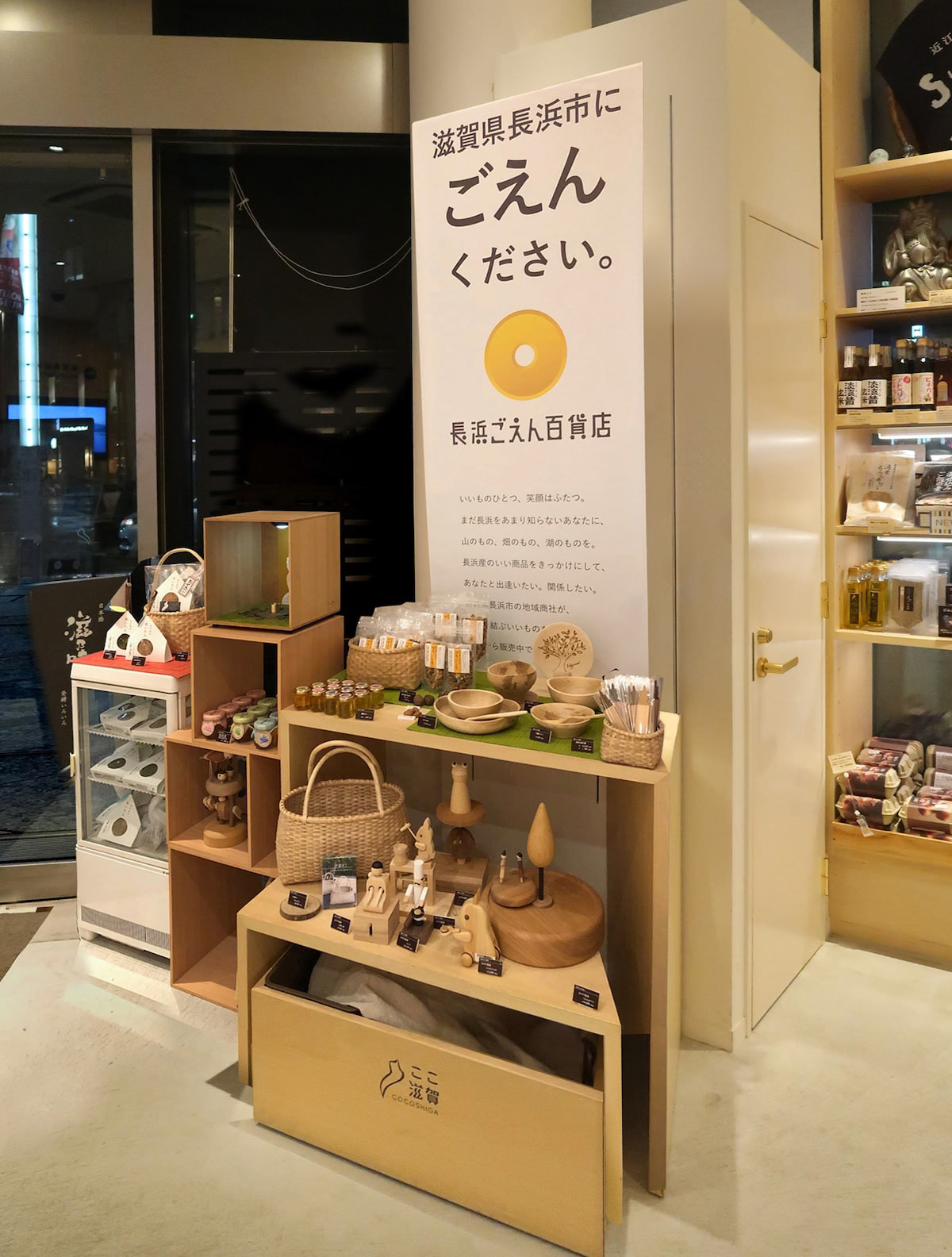 長浜ごえん百貨店のロゴデザインと企画です。長浜のいいものを集めて日本橋のここしがで催事をしました。5円玉を落として良いことが起きるご縁くださいボックスも作成しました。 Logo design and planning for Nagahama Goen Department Store. We also created a box in which you can drop a 5-yen coin and something good will happen to you. 为 Nagahama Goen 百货公司设计和规划徽标。 我们还制作了一个盒子,投下一枚五元硬币,就会有好事发生。