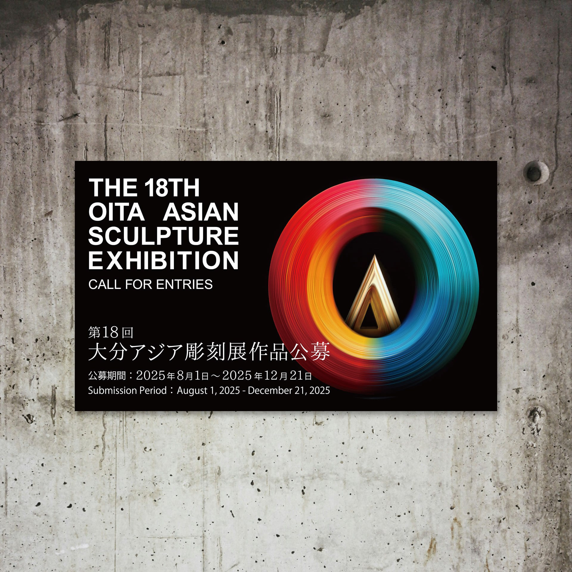 大分アジア彫刻展公募の公式ポスターを担当しました。大分の頭文字OとアジアのAをモチーフに、現代彫刻作品を思わせるようなデザインとしました。大分の向こうにアジアを見据えるイメージでAを向こう側に配置し、また、賞の頂点を金色のAで表しています。 I designed the official poster for the Oita Asia Sculpture Exhibition open call. Using the initials O for Oita and A for Asia as motifs, I created a design reminiscent of contemporary sculpture. The letter A is positioned toward the horizon, symbolizing the vision of Asia beyond Oita, while the golden A represents the pinnacle of the awards. 我负责设计了大分亚洲雕塑展公开征集活动的官方海报。以大分首字母O和亚洲首字母A为设计元素,打造出令人联想到现代雕塑作品的视觉效果。将A字母置于远方,象征着从大分眺望亚洲的意境,同时以金色A字母代表奖项的巅峰。
