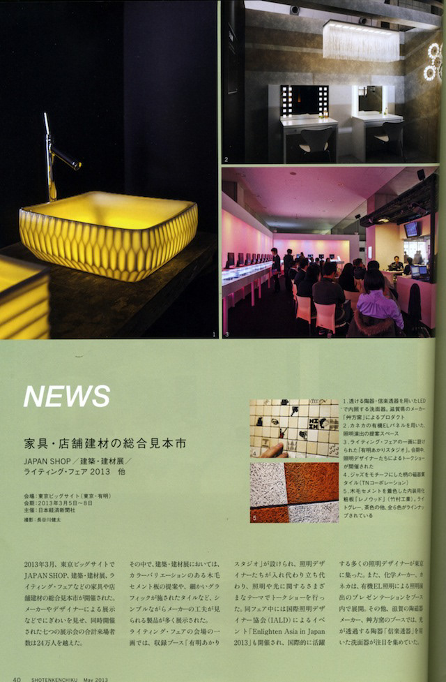 商店建築 2013年5月号に艸方窯の光る洗面器が掲載されました。SHOTENKENCHIKU May 2013 issue features Souhougama's shining washbowl.